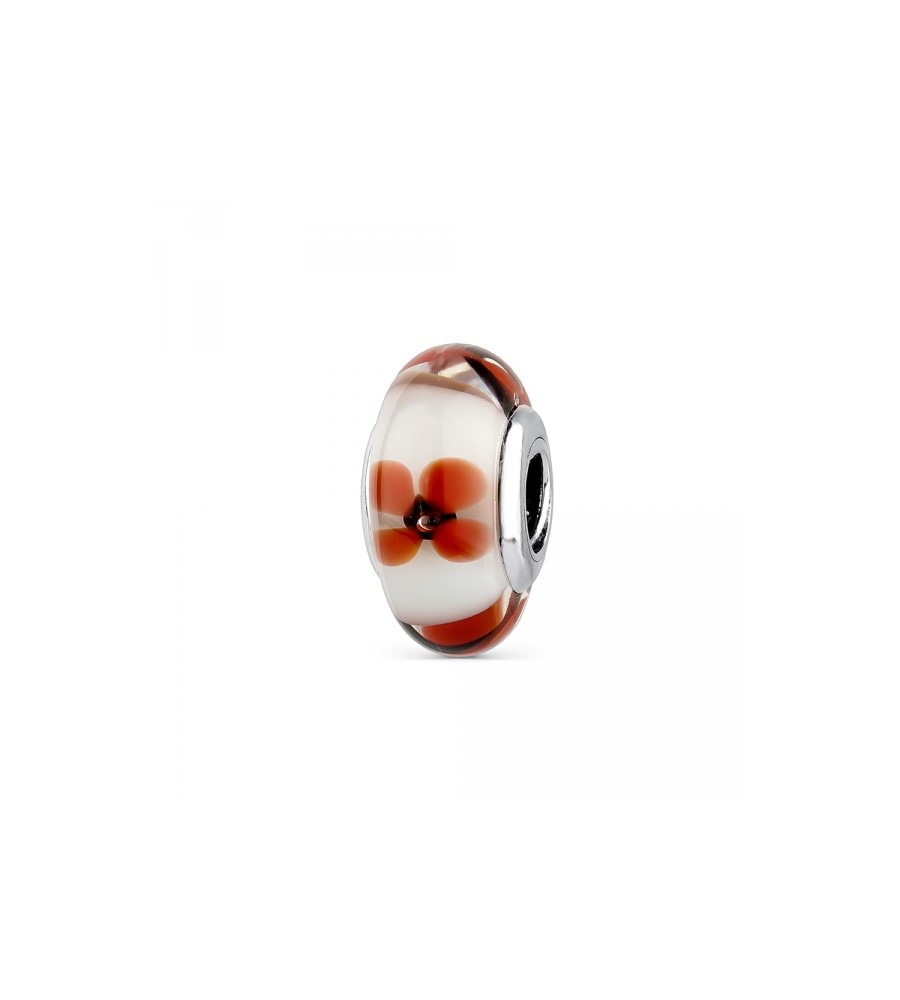 Abalorio a tu lado de plata 925ml de cristal de murano color blanco con amapolas rojas en su interior.