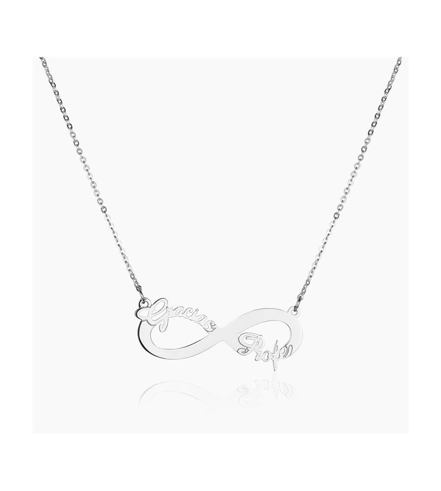Collar infinito “gracias profe” en plata de ley rodiada.
