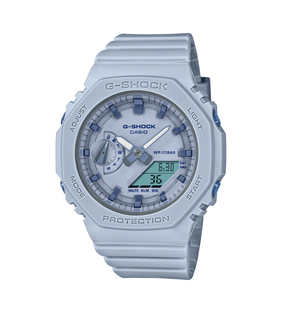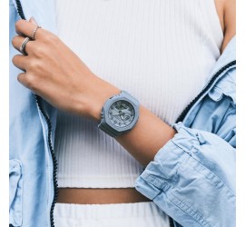 Simplifica tu vida con la popular combinación analógica-digital GMA-S2100 en colores monocromáticos y ahumados. La misma construcción resistente que el GA-2100 original, pero con un diseño aún más compacto y estilizado. La pantalla plana del reloj y los índices de barras simples proyectan un aspecto minimalista dejando claro que sabes exactamente hacia dónde vas. Un G-SHOCK cómodo y casual en elegantes colores uniformes.