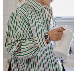 Información básica Dimensiones (L × An × Al) icon-question 38.6 × 36.3 × 9.6 mm Peso icon-question 50 g Material del estuche y del bisel Resina/cromado Correa Correa de acero inoxidable Cierre ajustable Resistencia al agua Resistente al agua Fuente de alimentación y duración de la batería Duración aproximada de la batería: 7 años en CR2016 Exterior Vidrio Resina de vidrio Tamaño de banda compatible De 145 a 205 mm Funciones del reloj Cronómetro Cronómetro de 1/100 segundos Capacidad de medición: 59'59,99" Modos de medición: Tiempo transcurrido, fracción de tiempo y tiempo del primer y segundo puesto Alarma / señal de hora Alarma diaria Señal de hora Iluminación Retroiluminación electroluminiscente Color claro Electroluminiscente: Verde azulado Calendario Calendario automático (28 días para febrero) Precisión Precisión: ±30 segundos al mes Otras opciones Indicación de la hora normal: Digital: Hora, minutos, segundos, p.m., fecha y día